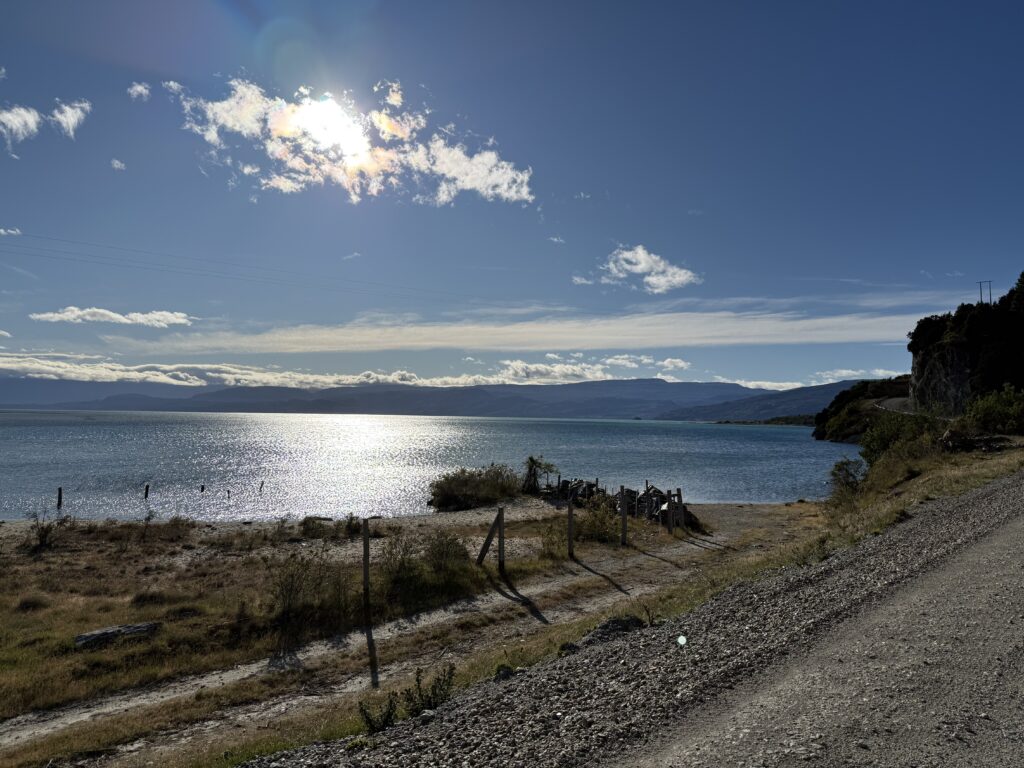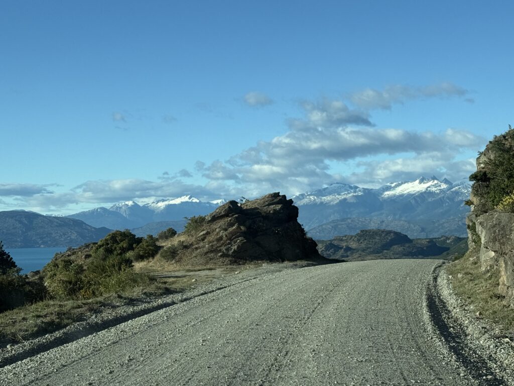 The 265 continued hugging the southern coast of Lago General Carrera towards Argentina, and Chile Chico, with ups and downs, hairpin bends and spectacular views.