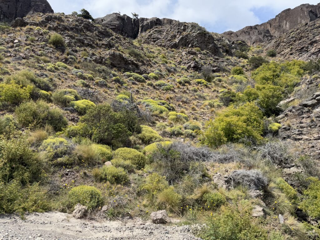 The other flowers and plant that I have identified using Google lens maybe totally incorrect in labelling as I have now realised that Google lens is determined to give you a response whether right or wrong ( a very human trait😄)!! But the most distinctive plant is a low growing spiky cushion like plant with small yellow flowers seen all over Patagonia called Mulinum Spinosum.