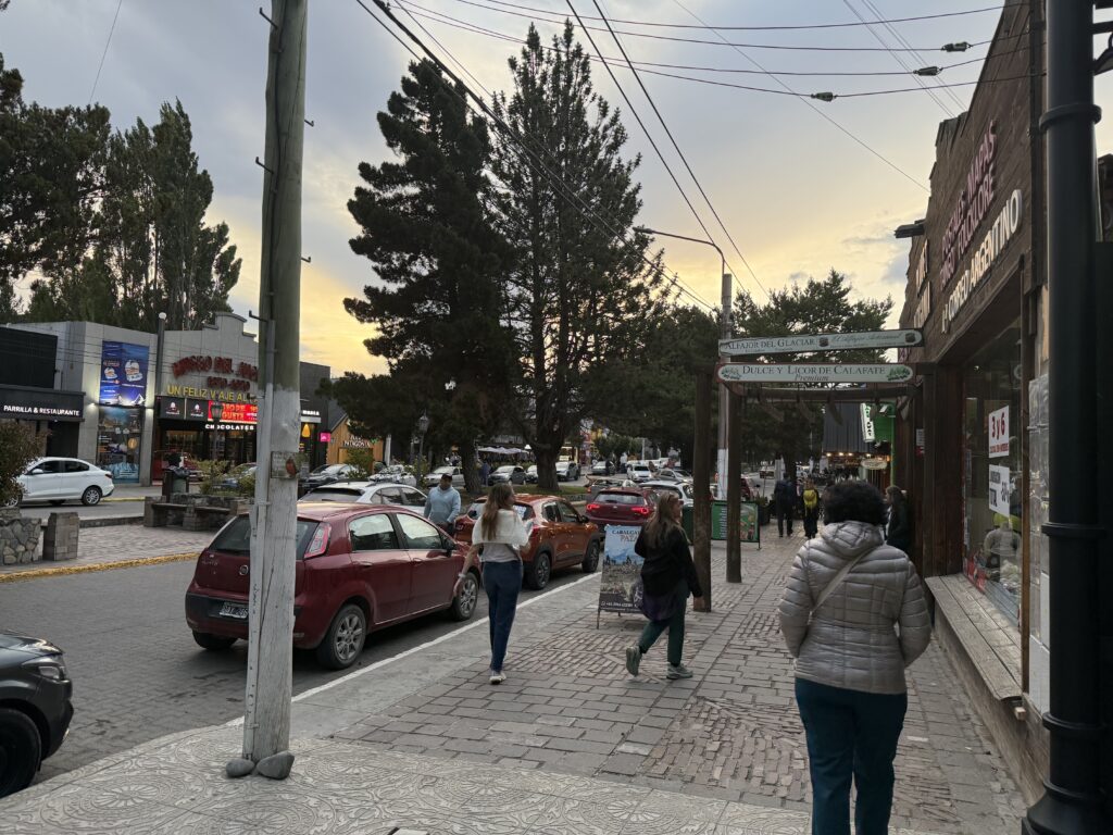 The Main Street of El Calafate Avenida del Liberator was bustling as we returned, and we stopped for dinner at Isabella’s a very large restaurant serving Argentinian stew, as recommended by the Italian couple at Santa Thelma. We were however not very impressed as we found the meat was tough and the stew very salty.