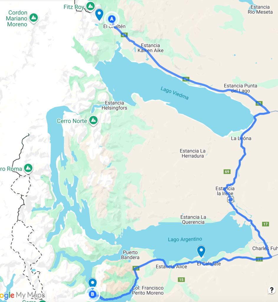 Route from El Chalten to Perito Moreno